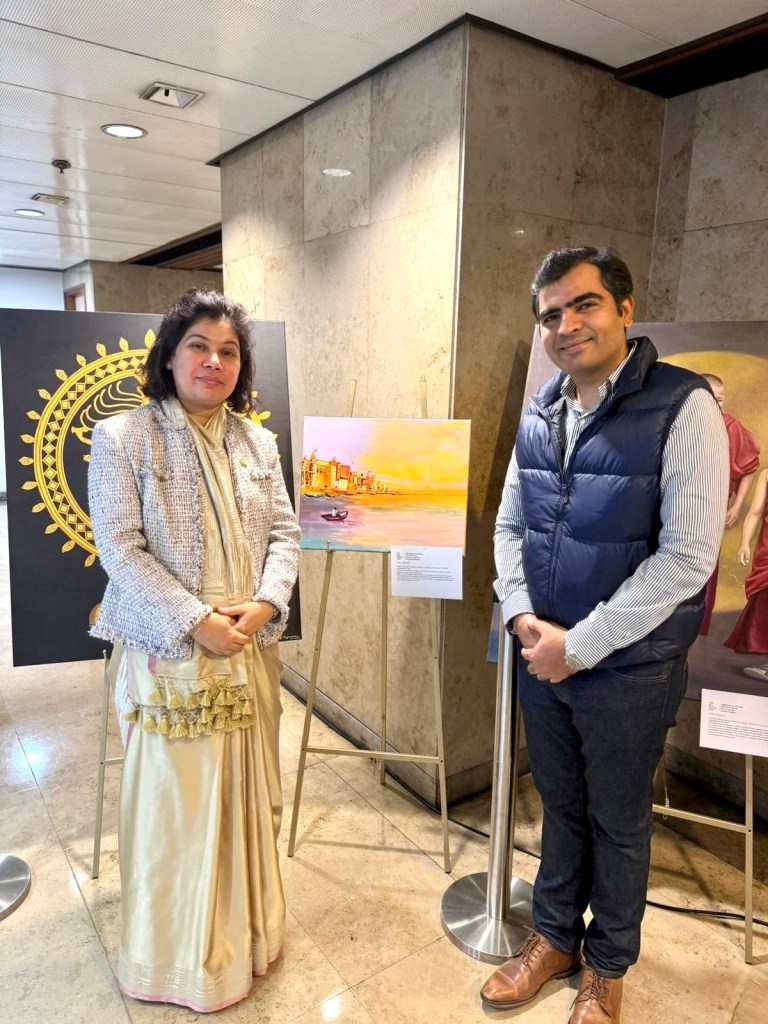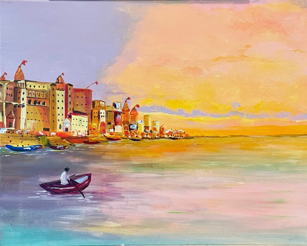 On the occasion of 75th republic day of India 🇮🇳, my artwork “Holy Ghats of Varanasi” was exhibited at the Indian consulate on 26th January 2024.